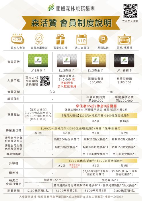 ✨ 原「森活卡會員」綁定後 直接升級 LV.2 森銀卡