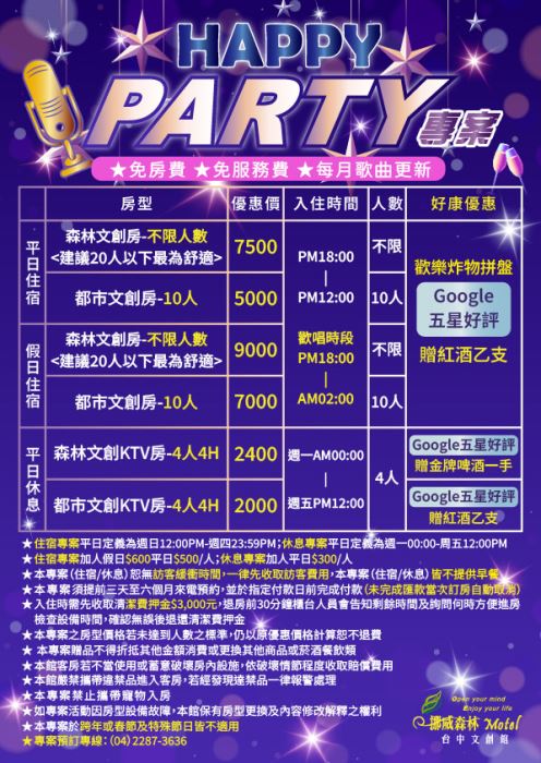 🔗查看更詳細的台中文創館平日PARTY歡唱專案!!