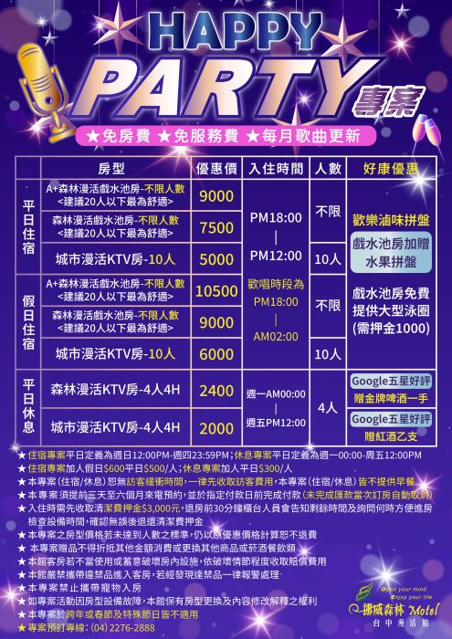🔗查看更詳細的台中漫活館平日Happy Party休息歡唱專案!!